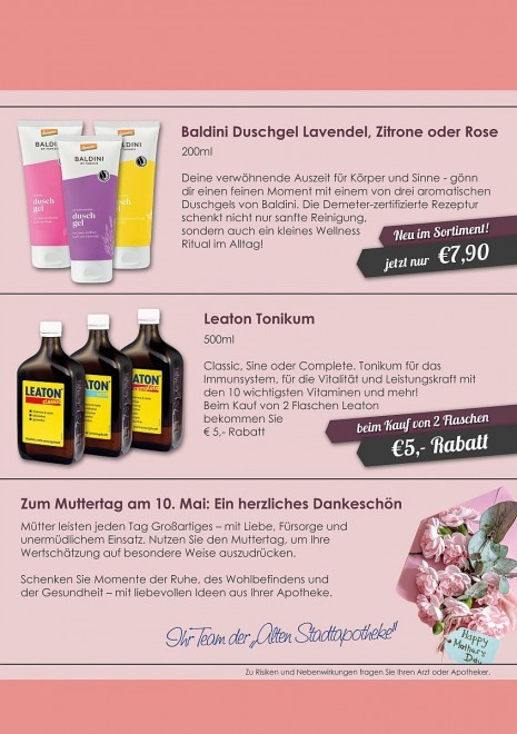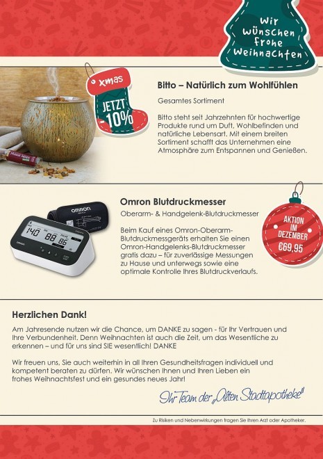 Unsere Apotheke steht für ein modernes pharmazeutisches Unternehmen, das Tradition und Zukunft miteinander verbindet. Die lange Tradition unseres Hauses ist für uns eine Verpflichtung, uns ständig weiterzuentwickeln und Ihnen damit bestmögliche Beratung und Versorgung zu bieten.